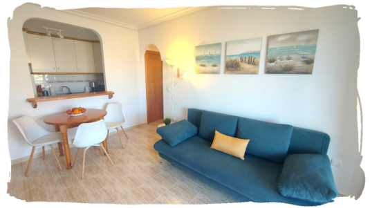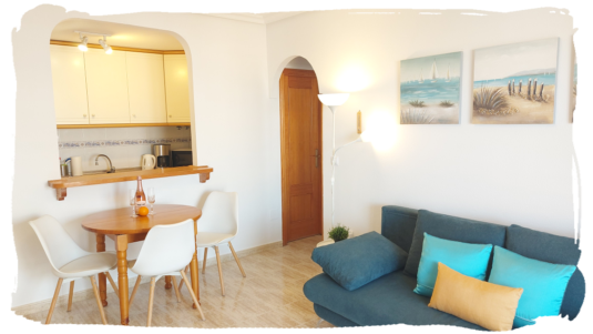 Az apartman egy jól felszerelt nappali - konyhából, egy hálószobából, fürdőszobából, és egy tágas teraszból áll. A teraszról csodálatos kilátás nyílik a tengerre, az alicantei öbölre és a várra. A másik irányban pedig a hegyek látványában és színpompás naplementékben gyönyörködhet.